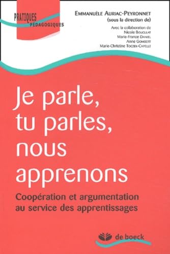 Je parle, tu parles, nous apprenons. Coopération et argumentation au service des apprentissages Emmanuèle Auriac - Peyronnet