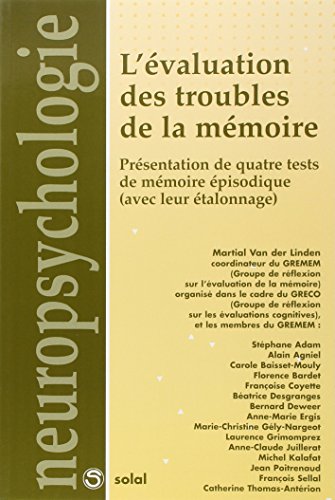 L'évaluation des troubles de la mémoire Présentation de quatres tests de mémoire épisodique(avec leur étalonnage) Martial Van Der Linden