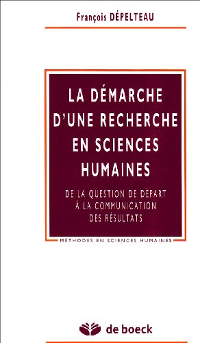 La démarche d'une recherche en sciences humaines De la question de départ à la communication des résultats François Dépelteau
