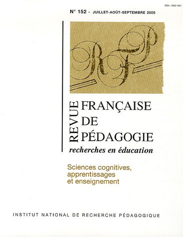Revue française de pédagogie No 152 Recherches en éducation , Sciences cognitives, apprentissages et enseignement