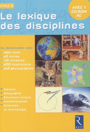Un dictionnaire illustré pour acquérir le vocabulaire essentiel à chaque discipline.1225 mots et définitions de type encyclopédique, organisés par champ disciplinaire pour en favoriser la mémorisation ; 650 images pour une iconographie riche et variée : dessins, schémas, cartes, photographies, peintures, enluminures... les définitions sont contextualisées : elles explicitent le sens d'un mot dans le cadre de la discipline concernée.Par exemple, la définition que l'on peut lire pour " ville " en histoire est différente de celle proposée en géographie. Cette approche spécifique permet à l'enfant de lire immédiatement et en autonomie la définition du mot qui correspond au contexte étudié ; celle-ci vient alors parfaitement en écho au savoir qu'il est en train de construire.Le CD-Rom offre une souplesse d'adaptation et permet une personnalisation des textes et des images.Il reprend en totalité la base de données (textes et images) de l'ouvrage et apporte la possibilité de l'adapter en ne sélectionnant que certains mots qu'il est alors possible de regrouper comme on le souhaite ; en rajoutant des mots, des images, des définitions ; en modifiant les définitions, les renvois, les mots de la même famille ou les images en choisissant la taille des images à l'impression...Pour chaque discipline, la base de données du CD-Rom propose également des classements thémartiques permettant notamment de n'imprimer que les mots qui y sont rattachés en histoire : la préhistoire, l'Antiquité, le Moyen Age, les Temps modernes, le XIXe siècle, le XXe siècle ; en géographie : la campagne, la mer, la montagne, la ville, les cours d'eau, l'économie, l'Europe et la France, le monde ; en éducation civique : les institutions, vivre en démocratie, les droits et les devoirs ; en mathématiques : numération, géométrie, résolution de problèmes, mesures, techniques opératoires ; en sciences et technologie : le monde vivant, le corps humain, l'environnement, l'énergie, le ciel et la Terre, la matière, le monde construit par l'homme et les TIC.Cet ouvrage est un outil référent pour chaque élève (en usage individuel) ou pour la classe (en usage collectif). Le Lexique des disciplines accompagne parfaitement l'acquisition d 'un socle essentiel de connaissances.
