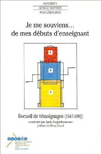 Je me souviens ... de mes débuts d'enseignant. Recueil de témoignages (1947-1992) Annie Burger-Roussenac